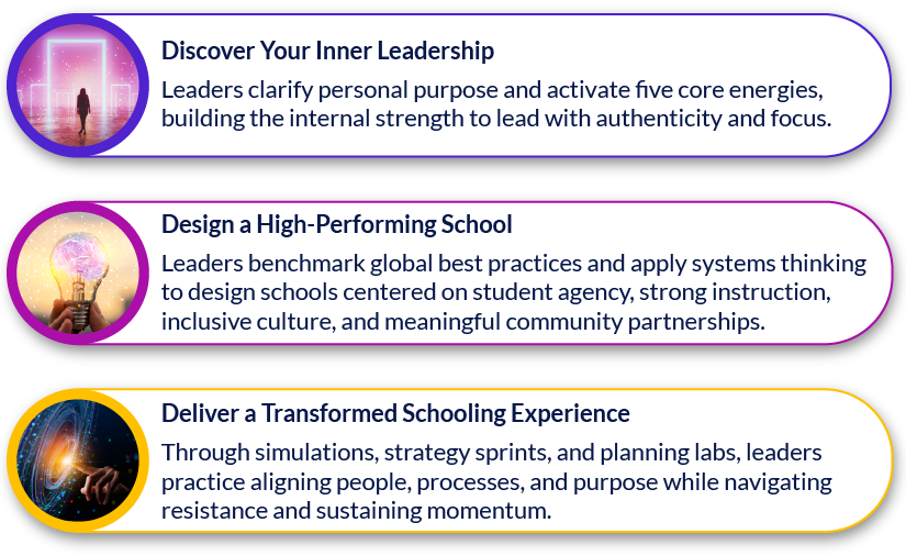 This experience integrates deep personal leadership work with rigorous systems design, preparing leaders to anticipate change, build coherence, and lead transformation at scale.